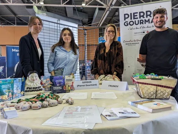 Parmi ces grands noms du monde économique corrézien, une table réunit des confiseries, des sucettes Pierrot gourmand et des gourdes de compote Andros. Ce sont les entreprises Gerson Pierrot gourmand, basée à Altillac et Fruitnov, basée à Collonges-la-Rouge et Saint-Viance, qui recrutent.